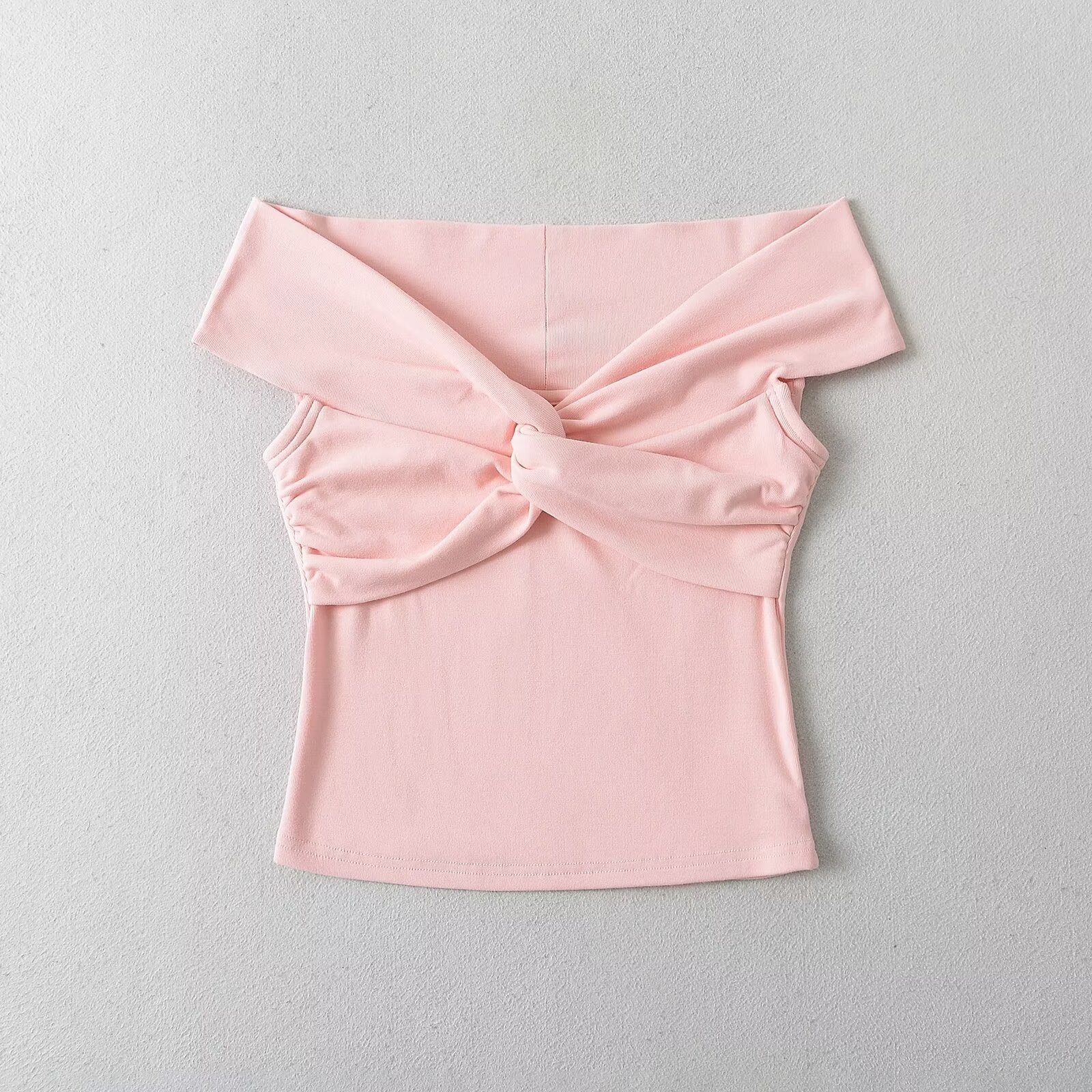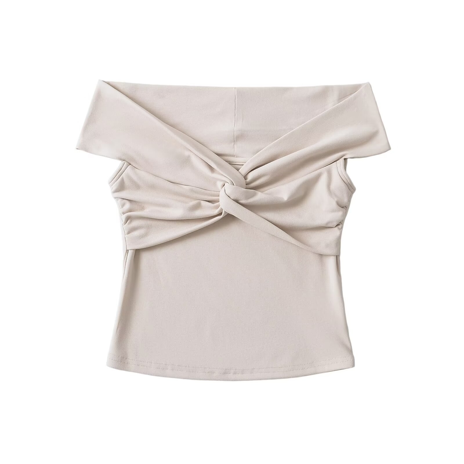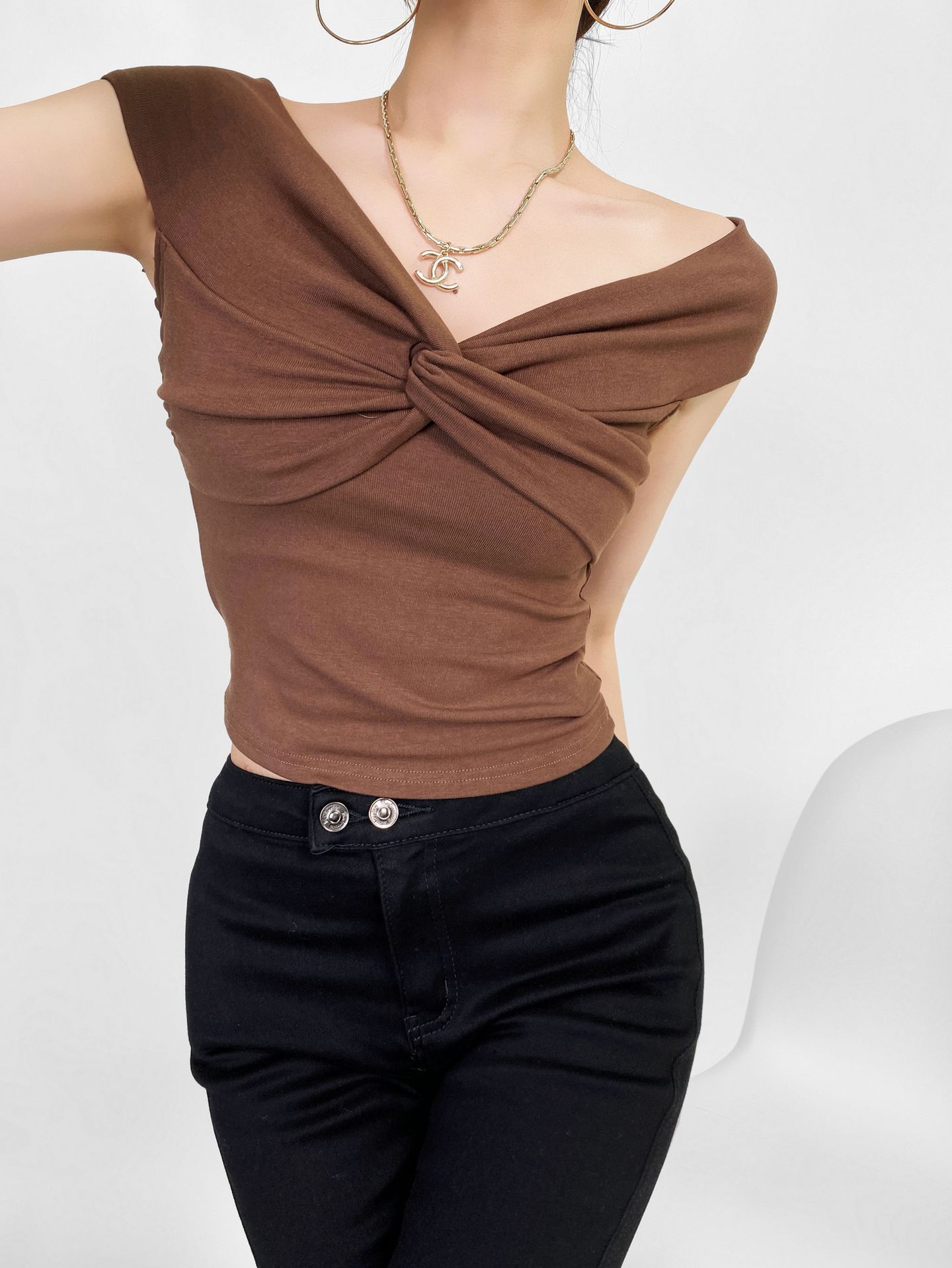 Pleated Twisted And Layered Short-sleeve T-shirt