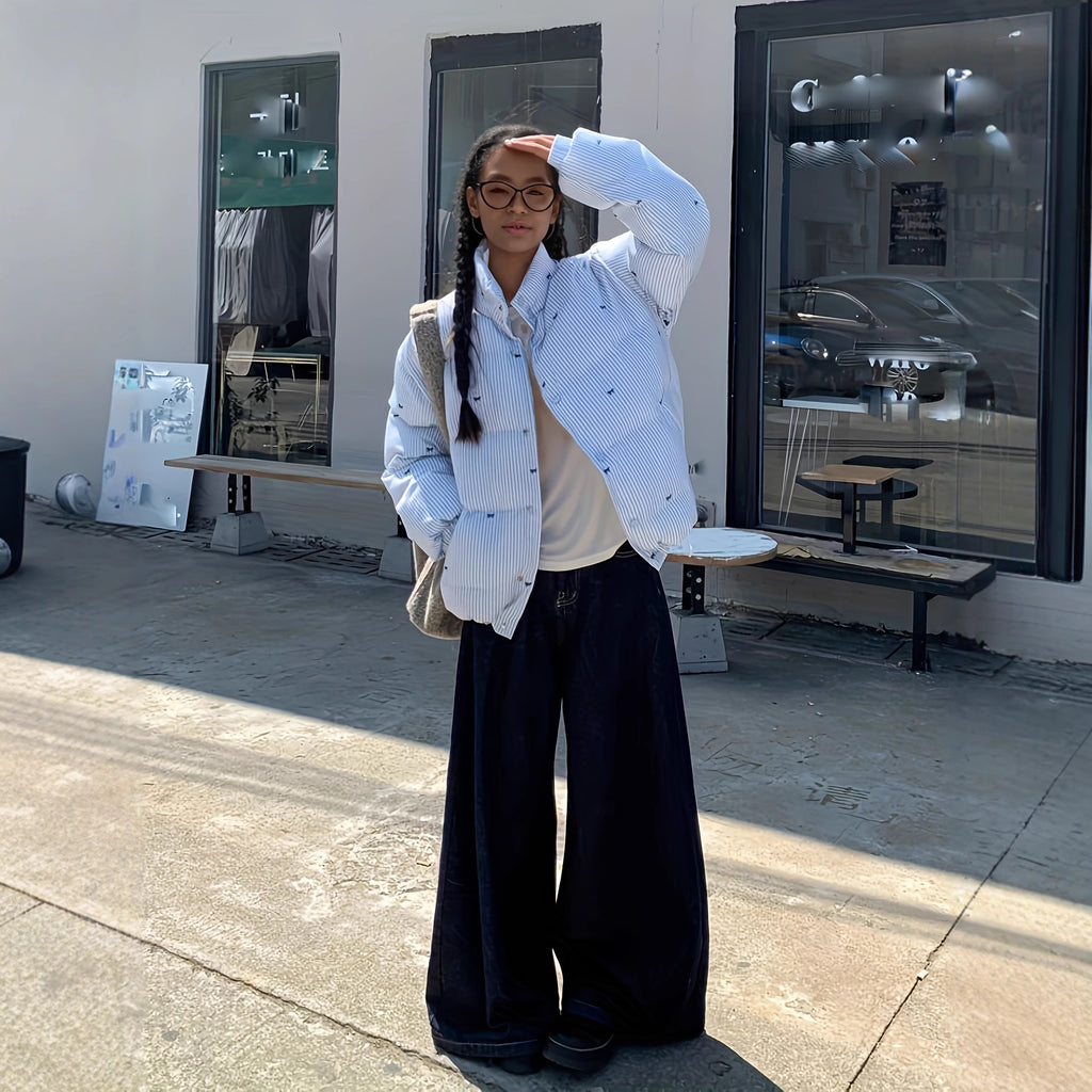 Striped Bow Coat Women's Thick Warm Long Sleeve