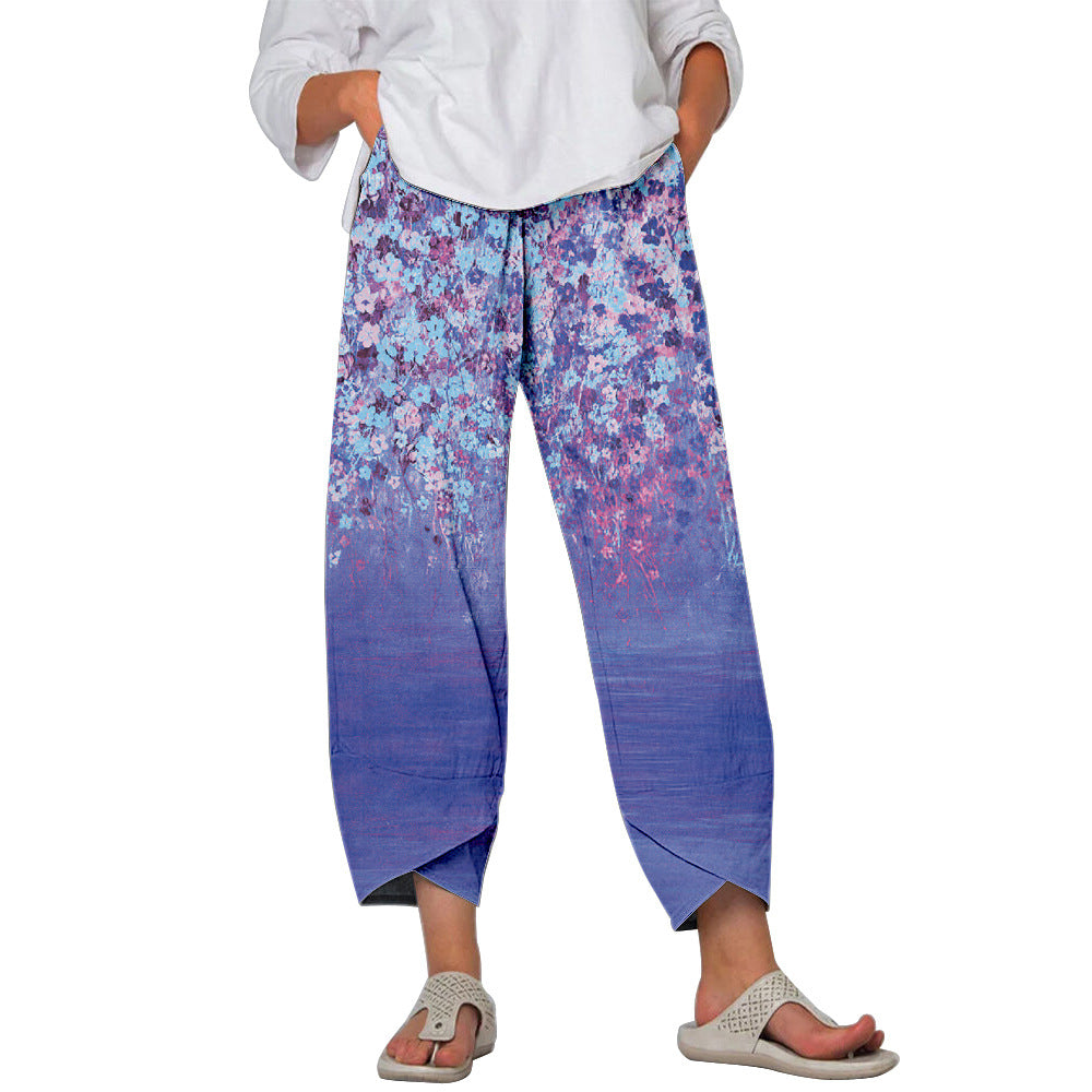 पुष्प प्रिंट ढीली फिटिंग टखने की लंबाई पैंट