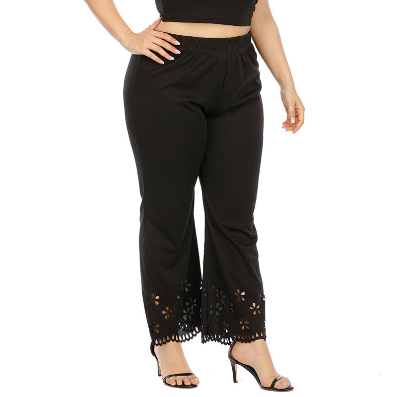 Stay comfortable and cute at the same time with the Women's High Waist Elastic Band Pants with Floral Cutouts along the ankles, giving it a unique touch.