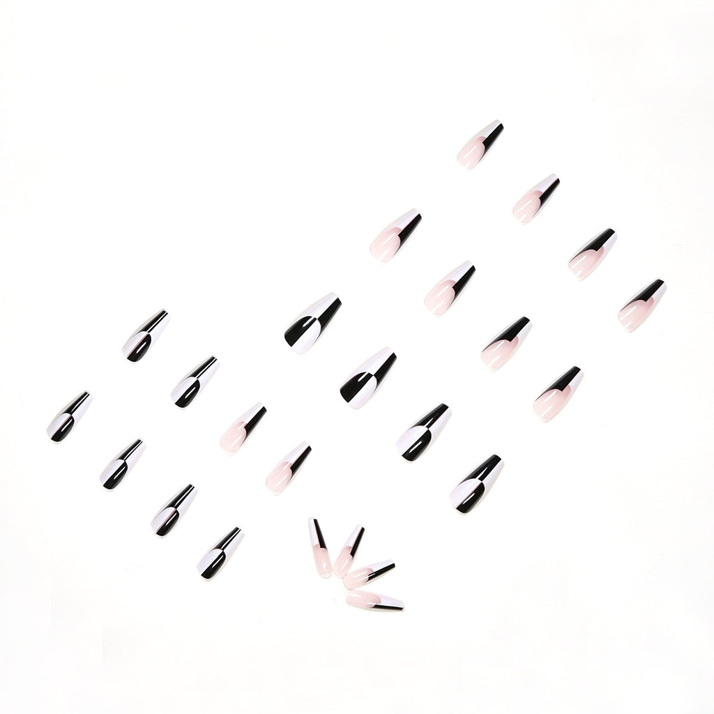 Women's Retro Long Square Black and White Asymmetrical False Nail Set